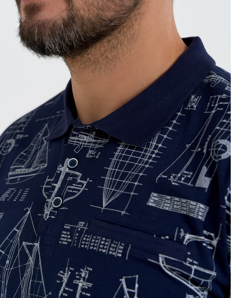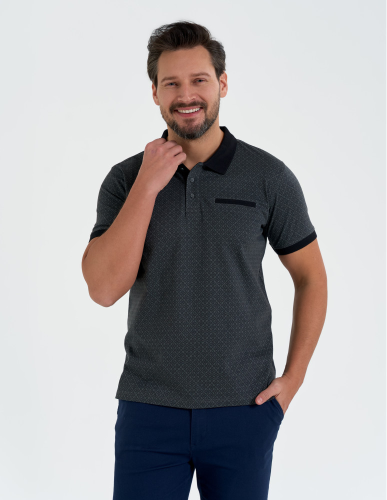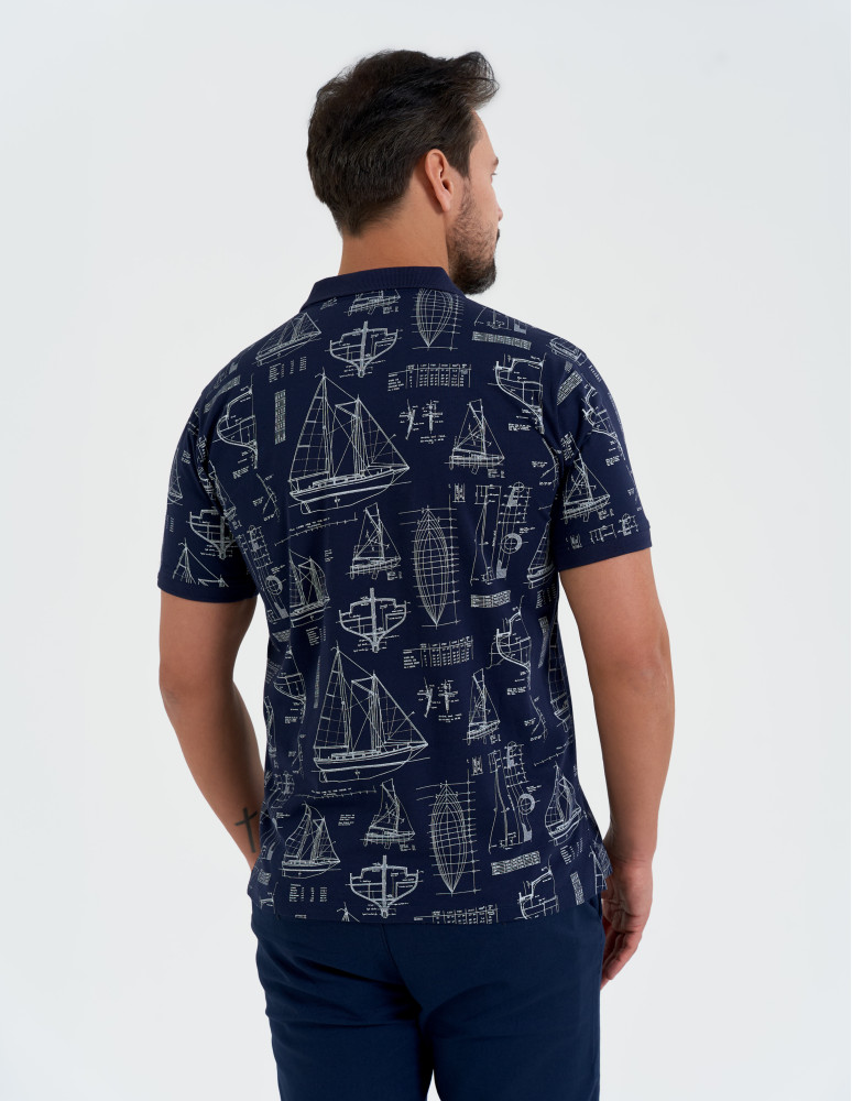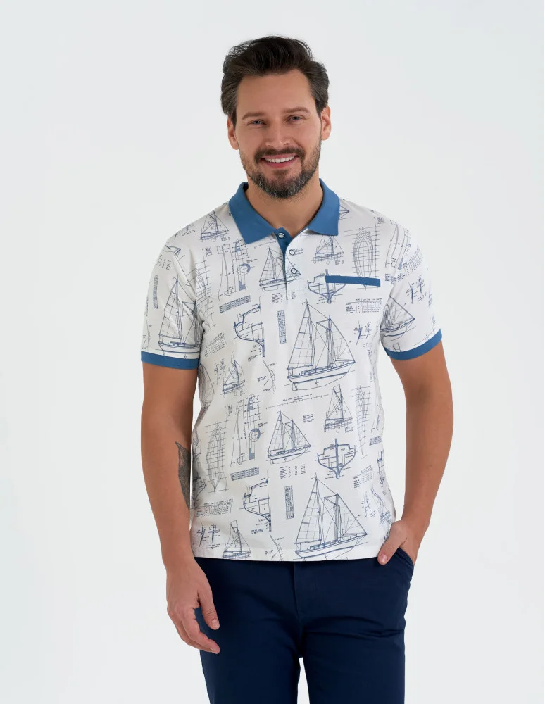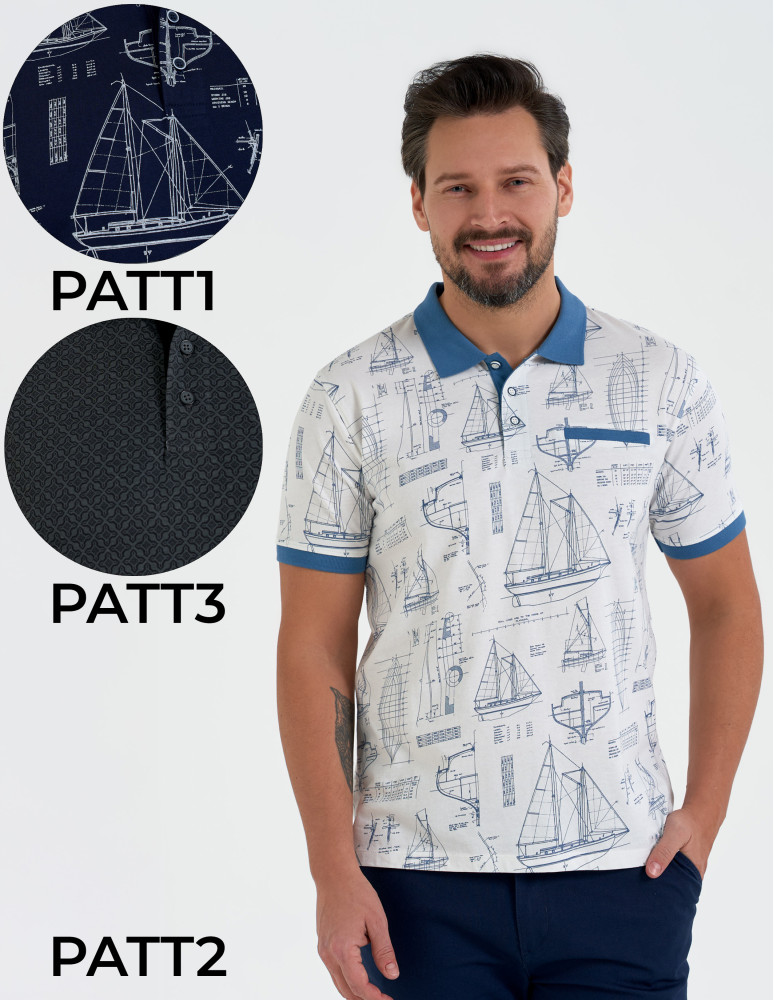 Koszulka polo męska z krótkim rękawem wzorzysta WZÓR 2