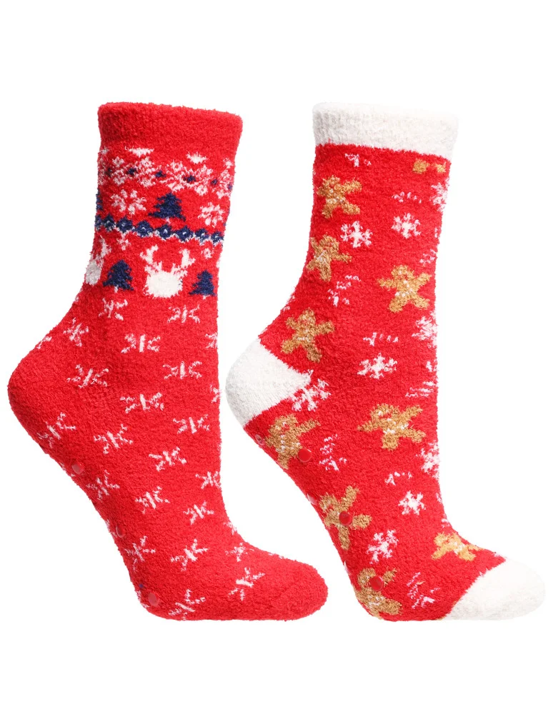 Ciepłe skarpety damskie długie w świąteczne wzory 2-pak CZERWONY