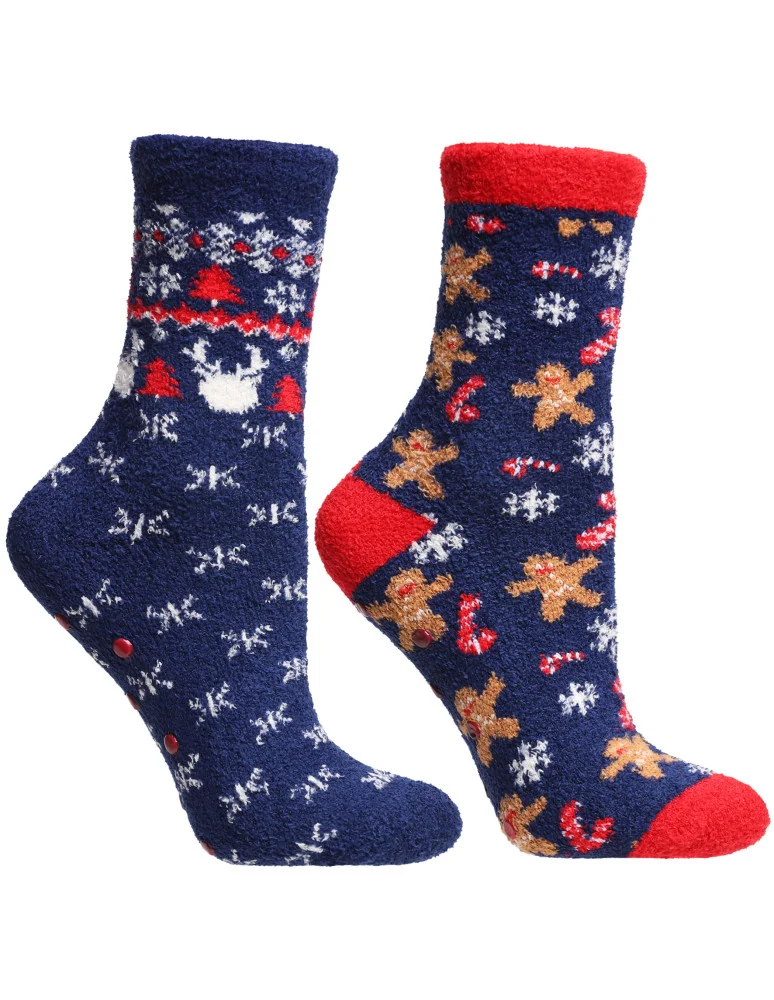 Ciepłe skarpety damskie długie w świąteczne wzory 2-pak GRANATOWY