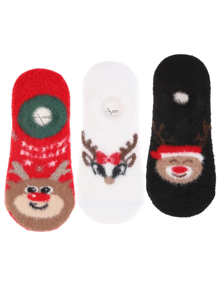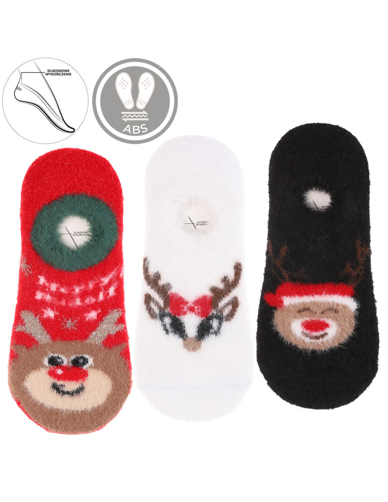Ciepłe skarpety damskie niskie stopki w świąteczny wzór 3-pak WIELOKOLOROWY