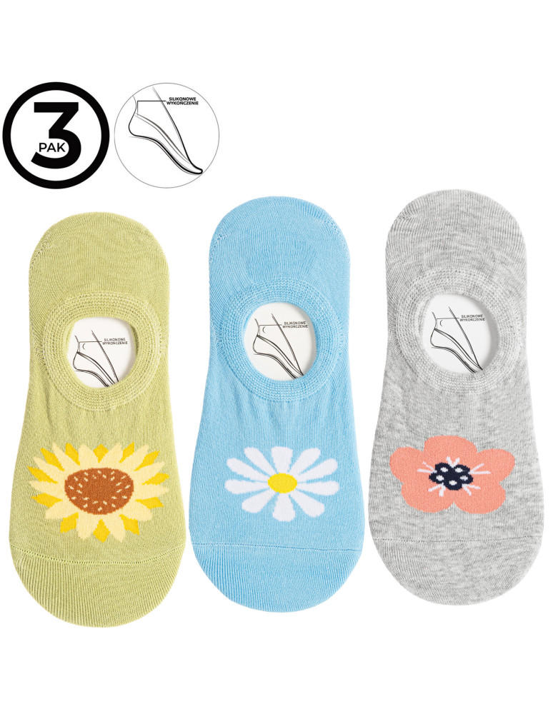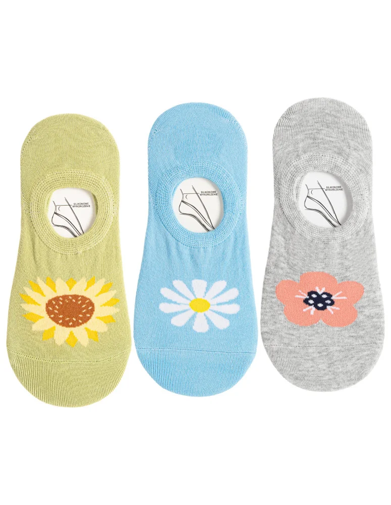 Skarpety damskie niskie stopki w kwiatowe wzory 3-pak WIELOKOLOROWY