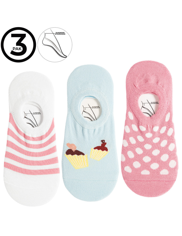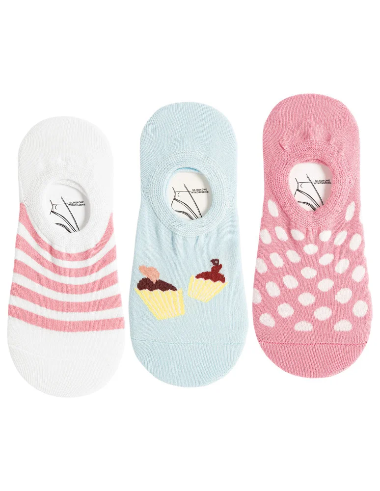 Skarpetki damskie niskie stopki zabawne 3-pak WIELOKOLOROWY