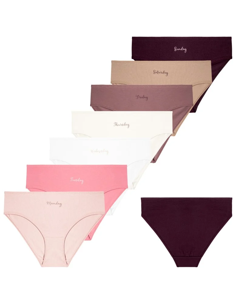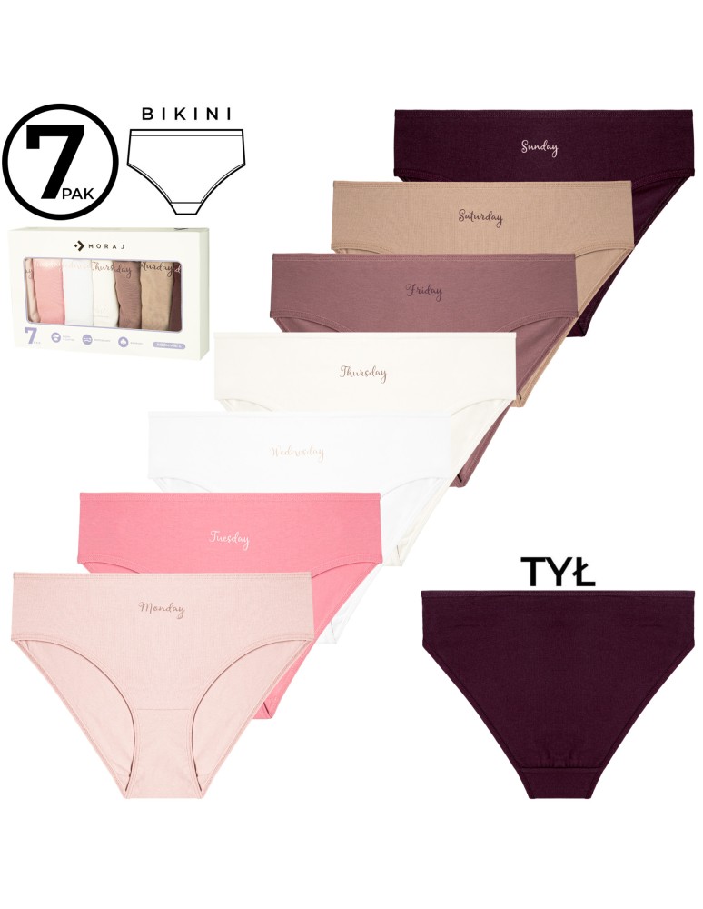 Majtki damskie bikini bawełniane na każdy dzień tygodnia 7-pak WIELOKOLOROWY