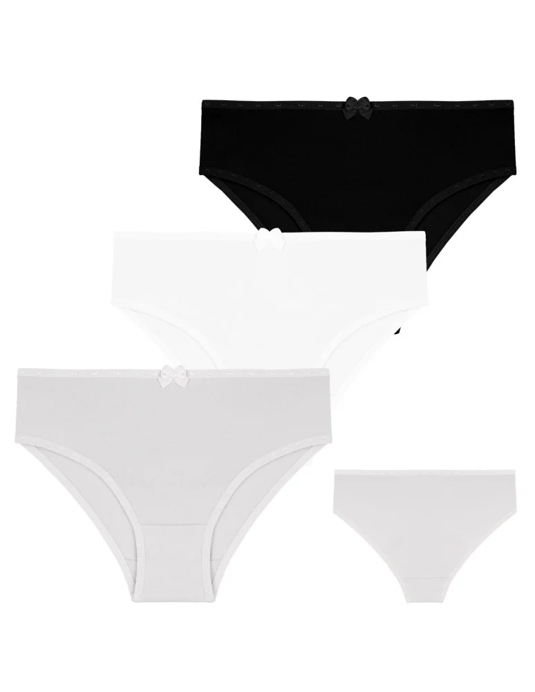 Niech codziennie wygoda spotyka się z uroczym stylem, figi dziewczęce z kokardką do klasyka w najlepszym wydaniu – swobodna, bawełna, subtelna kokardka i przyjemna dla wykończenia, które powodują, że te elementy są obowiązkowe dla każdego elementu ręcznego. Zestaw 3 sztuk w neutralnych kolorach – biały, czarny i szary – idealnie dopasowuje się do każdej stylizacji i zapewnia komfort przez cały dzień.