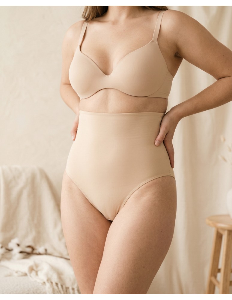 Majtki damskie figi wyszczuplające z wysokim stanem BEŻOWY