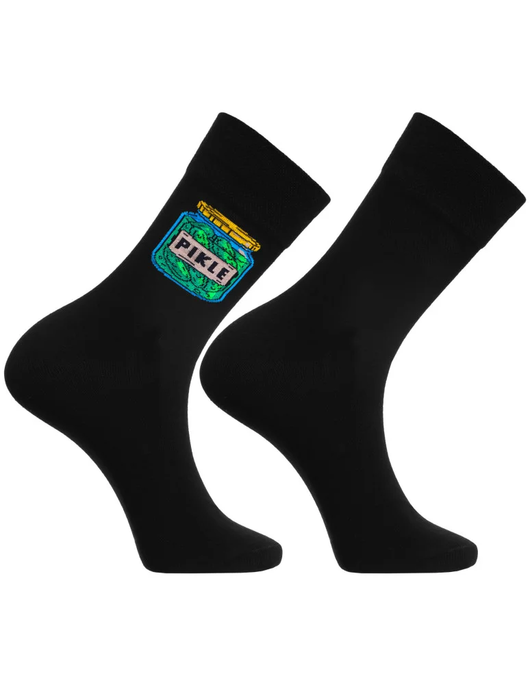 Ożyw swoją codzienną stylizację dzięki zestawowi 3 par męskich skarpet z humorystycznym ogórkowym motywem. W komplecie znajdziesz długie skarpety z nadrukiem ogórków, haftem i grafiką słoika z napisem „PIKLE”. Te bawełniane skarpety z domieszką elastycznych włókien zapewniają wygodę, przewiewność i świetne dopasowanie do stopy.