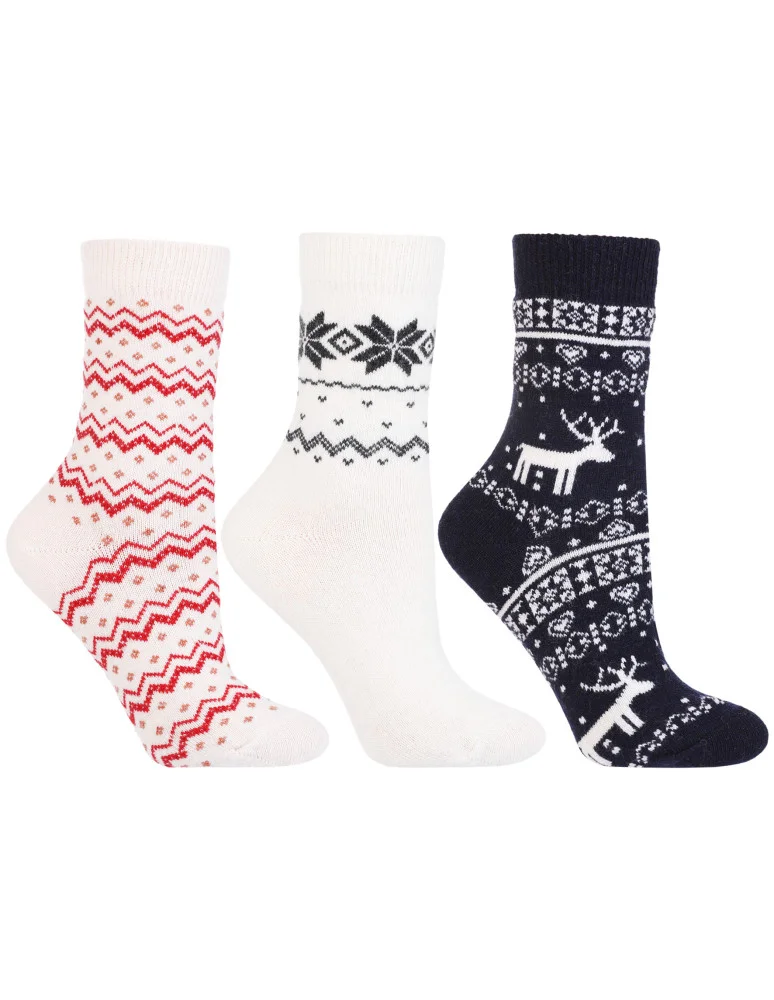 Damskie ciepłe skarpety z wzorem norweskim 3-pak WIELOKOLOROWY
