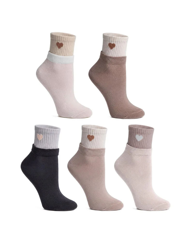 Skarpetki damskie krótkie 3/4 z haftem serce 5-pak MIX KOLOR