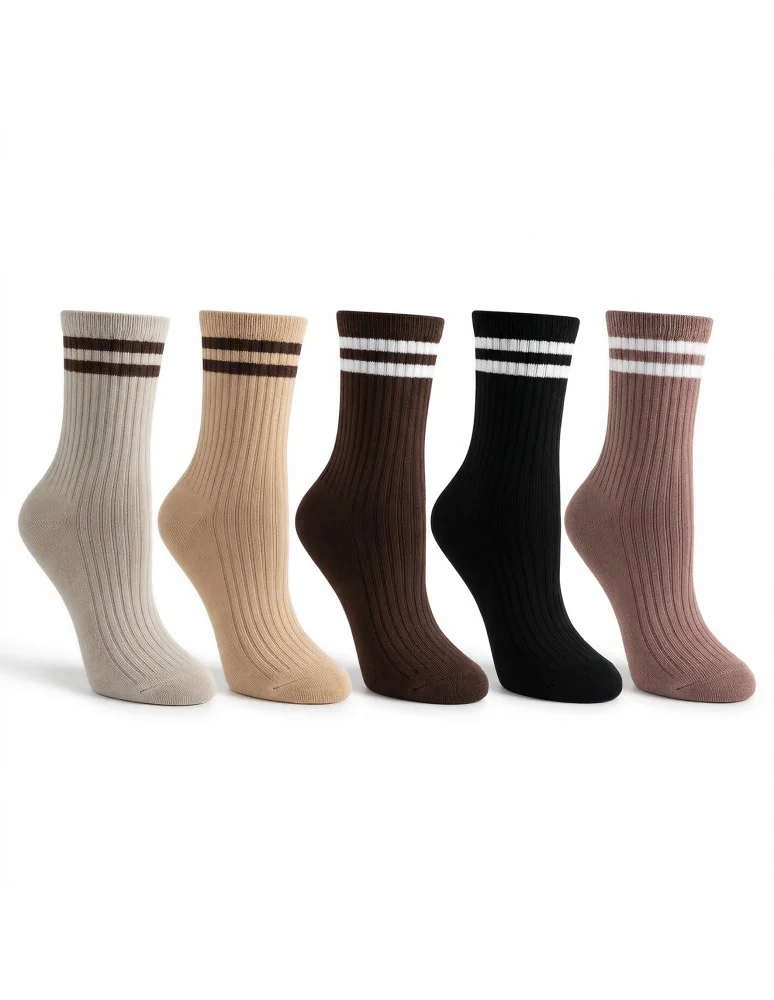 Zestaw zawiera pięć stonowanych kolorów, które idealnie pasują zarówno do codziennych stylizacji, jak i do bardziej casualowych outfitów. Elastyczny ściągacz zapobiega zsuwaniu się skarpet, a oddychający materiał dba o komfort i świeżość stóp.