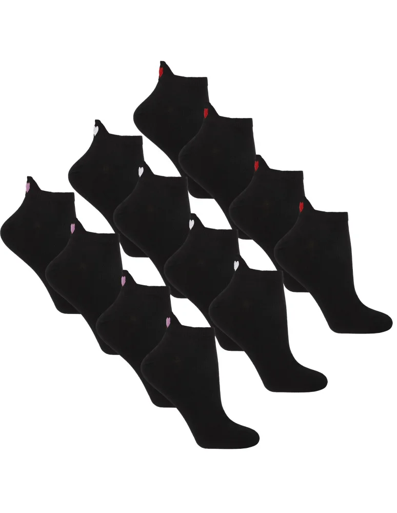 Skarpety stopki damskie z zapiętką i haftem serce 12-pak WIELOKOLOROWY