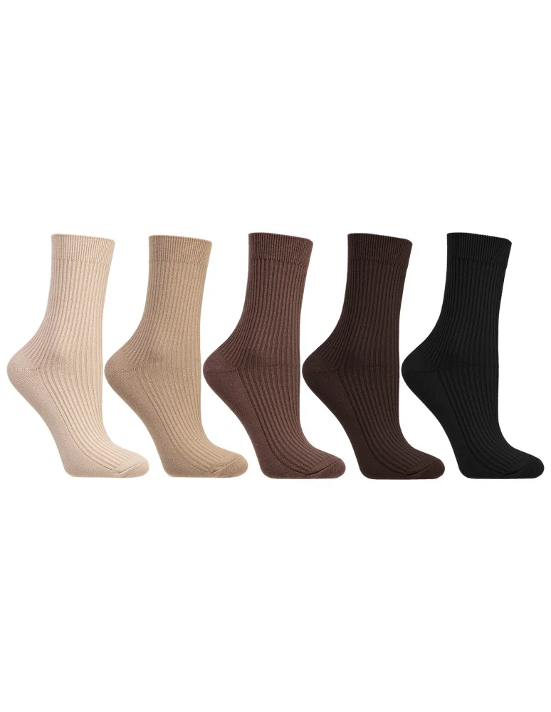 Skarpetki damskie z wiskozą - basic na co dzień. Wykonane z miękkiej wiskozy i wykończone bezuciskowym ściągaczem, otulą Twoje stopy delikatnością i zapewnią wygodę na cały dzień. Ich klasyczny prążkowany wzór i neutralne kolory to ponadczasowy wybór, który dopasuje się do każdej stylizacji – od domowej po biurową.
