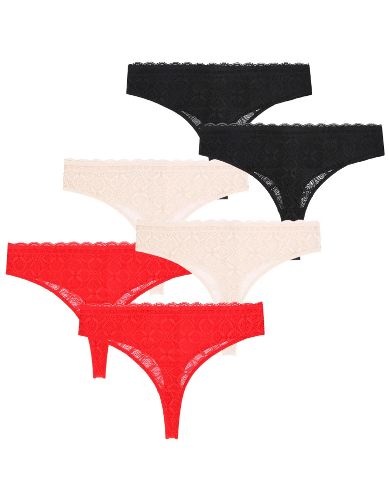 Majtki damskie stringi z miękkiej koronki 6-pak WIELOKOLOROWY