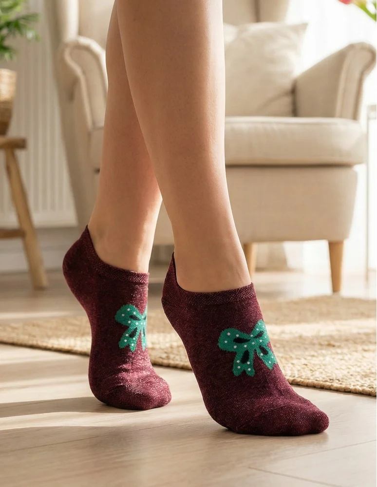 Damskie skarpetki typu stopki to praktyczny wybór do codziennego noszenia, szczególnie do obuwia o niskim kroju. Wykonane z bawełnianego materiału, są miękkie, przyjemne w dotyku i zapewniają komfort przez cały dzień. Zastosowanie silikonowego wykończenia w tylnej części pomaga utrzymać skarpetki na miejscu i zapobiega ich zsuwaniu się podczas chodzenia. Niski, dyskretny krój sprawia, że stopki pozostają niemal niewidoczne w obuwiu, a dekoracyjny wzór dodaje im subtelnego charakteru. Zestaw trzech par to wygodne i funkcjonalne rozwiązanie na co dzień.