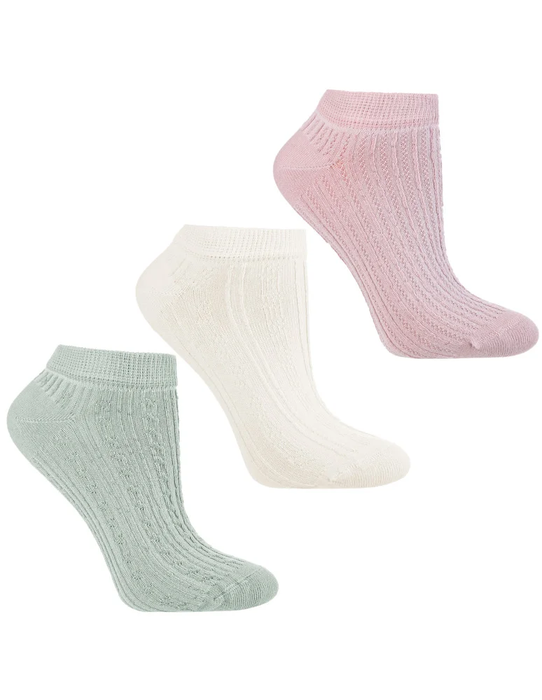 Skarpetki damskie stopki bawełniane prążkowane 3-pak WIELOKOLOROWY