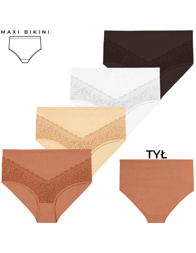 Majtki damskie figi maxi bikini z koronkowym akcentem 4-pak WIELOKOLOROWY
