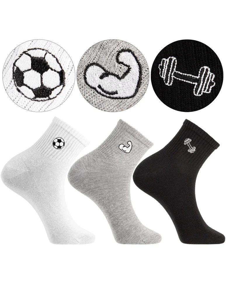 Skarpetki męskie bawełniane z motywem sportowym 3-pak WIELOKOLOROWY