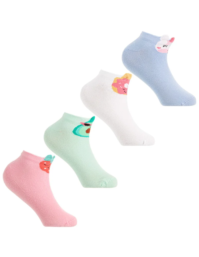 Dziewczęce stopki skarpetki z uroczymi wzorami 4-pak WIELOKOLOROWY