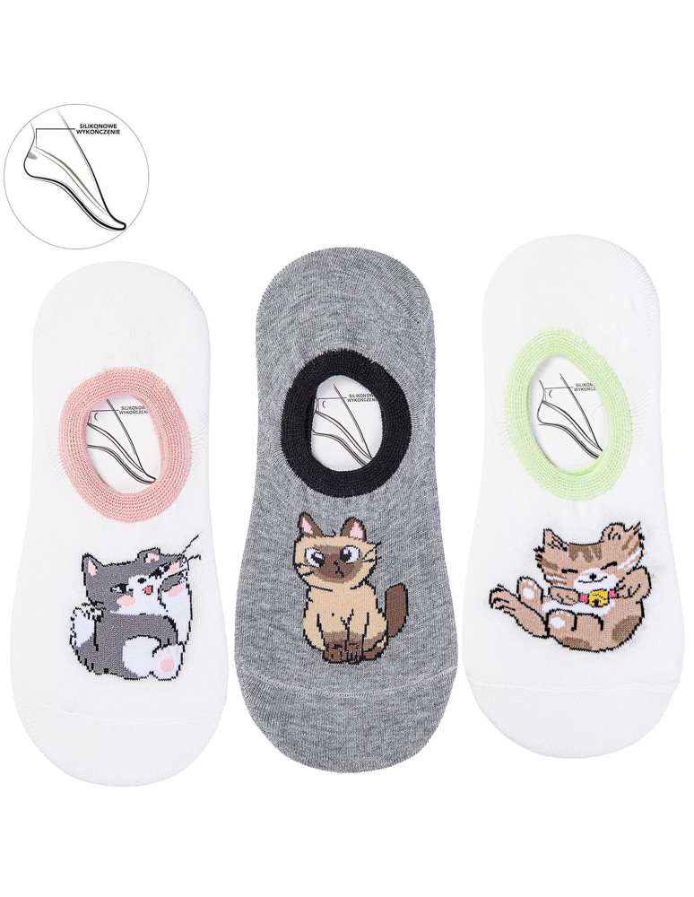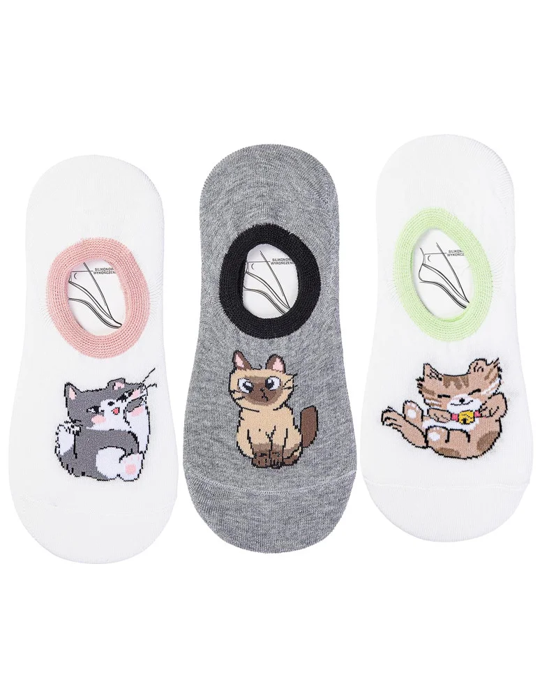 Niskie stopki skarpetki bawełniane z kotkami 3-pak WIELOKOLOROWY
