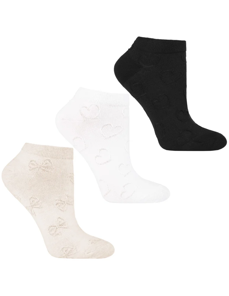 Skarpetki damskie stopki klasyczne w serca ażurowe 3-pak WIELOKOLOROWY