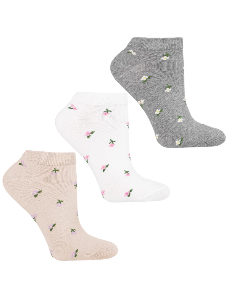 Skarpetki damskie stopki w drobne kwiatki 3-pak WIELOKOLOROWY