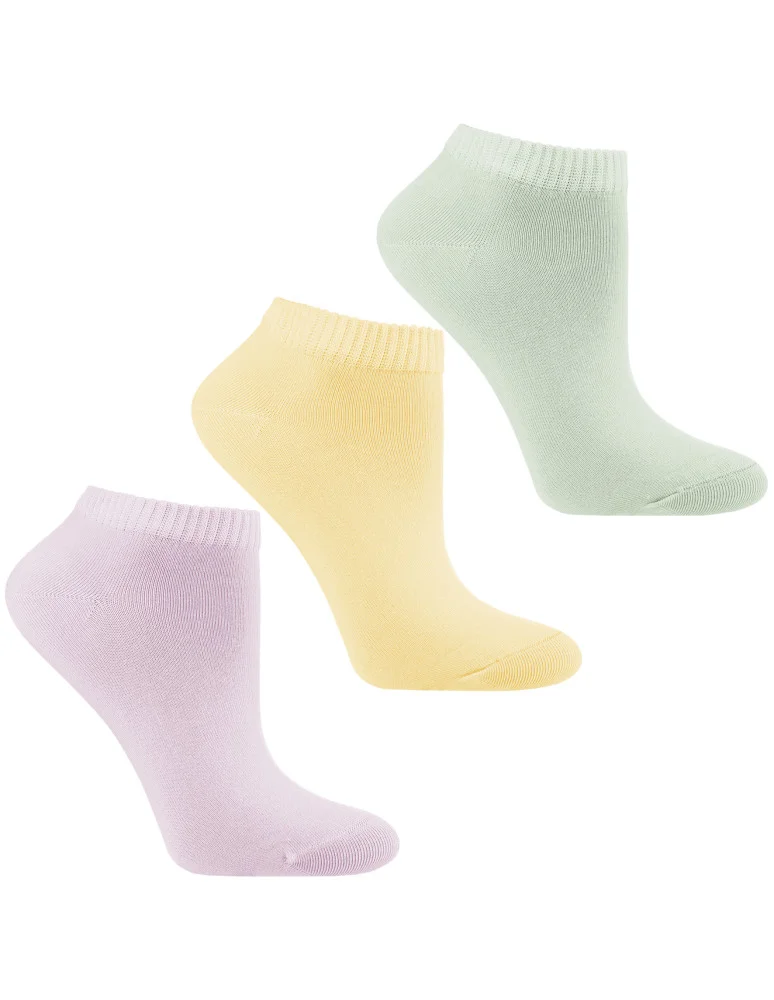 Damskie skarpetki stopki w praktycznym zestawie 3-pak, wykonane z wysokiej jakości bawełny z dodatkiem nowoczesnego włókna lyocell oraz elastycznych domieszek. To idealne połączenie komfortu, funkcjonalności i troski o środowisko. Delikatne, pastelowe kolory nadają im lekkiego, kobiecego charakteru i sprawiają, że doskonale pasują do codziennych stylizacji.