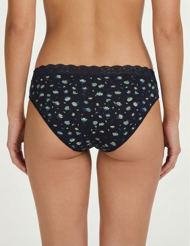 Majtki damskie figi bikini z wzorem wykończone koronką 6-pak