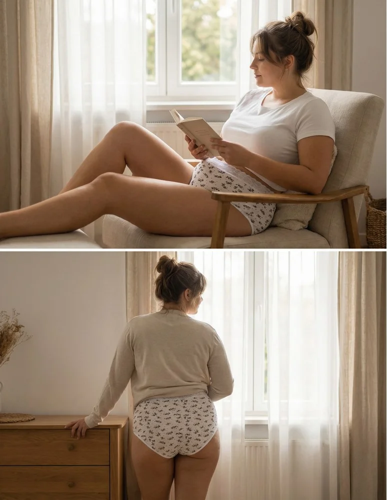 Zestaw 4 par majtek damskich w fasonie maxi bikini to połączenie wygody, stabilnego dopasowania i subtelnie kobiecego wykończenia. Podwyższony stan oraz szersze boki zapewniają większe krycie i komfort noszenia przez cały dzień – bez rolowania i ucisku.