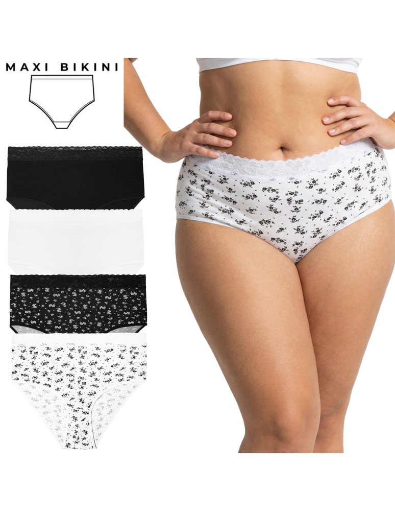 Majtki damskie maxi bikini bawełniane z elastyczną koronką 4-pak WIELOKOLOROWY