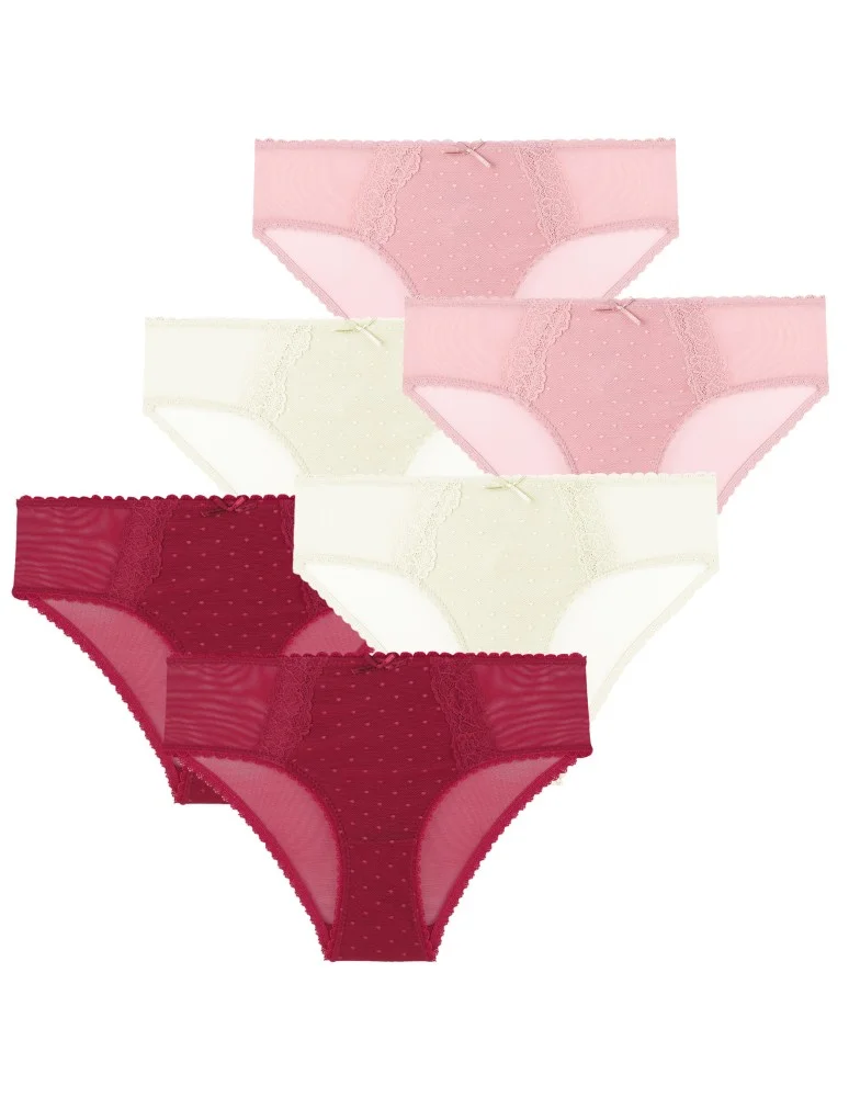 Majtki damskie figi bikini eleganckie z siateczką z tyłu 6-pak MIX KOLOR