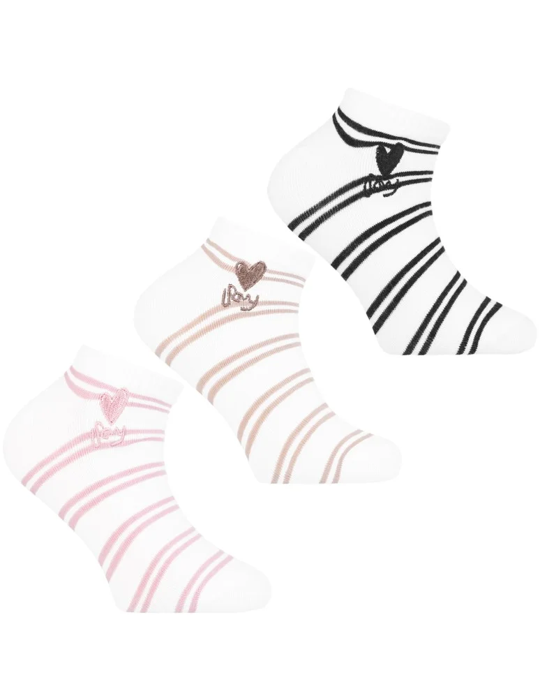 Skarpetki dziewczęce bawełniane w paski i haftowanym serduszkiem 3-pak WIELOKOLOROWY