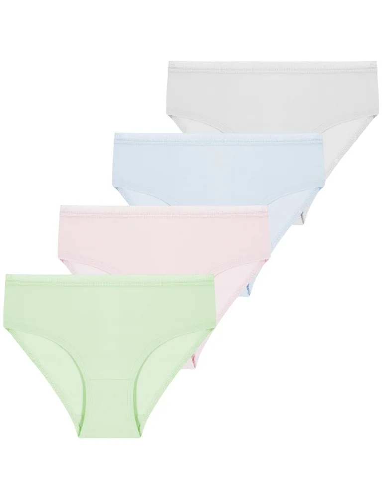 Dziewczęce figi bawełniane w zestawie 4 sztuk to połączenie prostoty, wygody i uniwersalnego stylu. Gładki design w delikatnych, pastelowych odcieniach sprawia, że bielizna jest subtelna i ponadczasowa – idealna na każdy dzień.