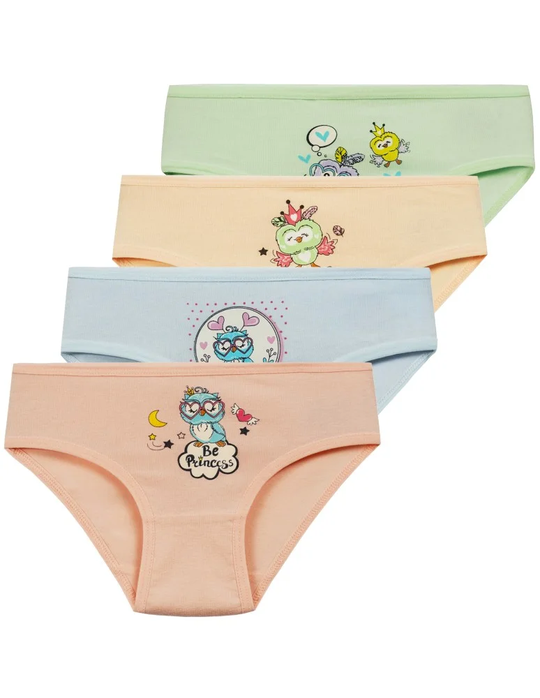 Majtki figi dla dziewczynki bawełniane z motywem sowy 4-pak WIELOKOLOROWY