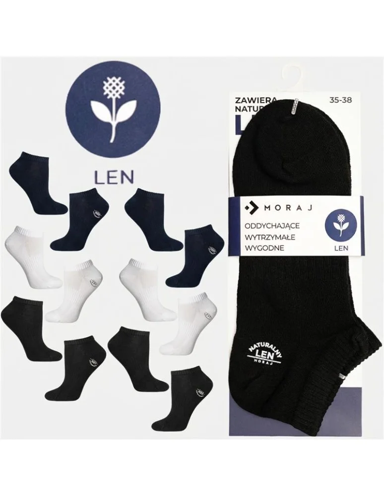 Damskie stopki w zestawie 6 par to funkcjonalna baza na co dzień, która łączy wygodę krótkiego kroju z właściwościami naturalnych włókien. Dodatek lnu sprawia, że skarpetki są nie tylko lekkie, ale przede wszystkim skutecznie wspierają komfort noszenia niezależnie od temperatury.