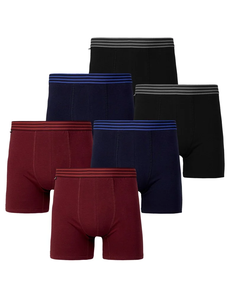 Bokserki męskie long fit bawełniane gładkie z wydłużoną nogawką 6-pak WIELOKOLOROWY