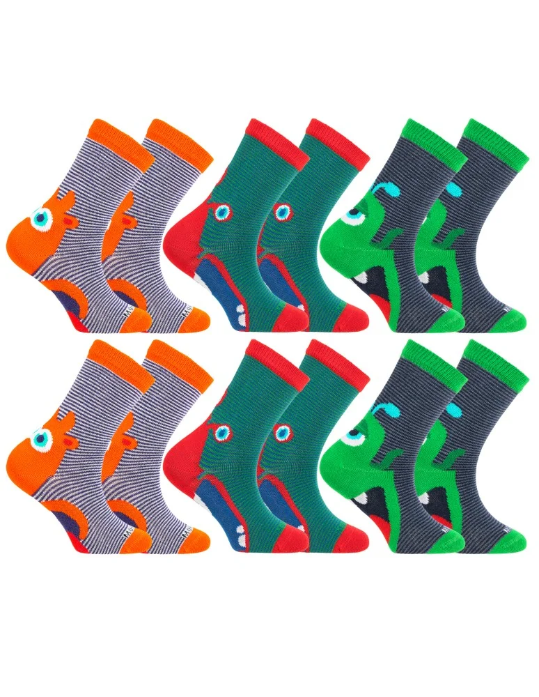 Chłopięce skarpetki bawełniane kolorowe w zabawne potworki 6-pak WIELOKOLOROWY