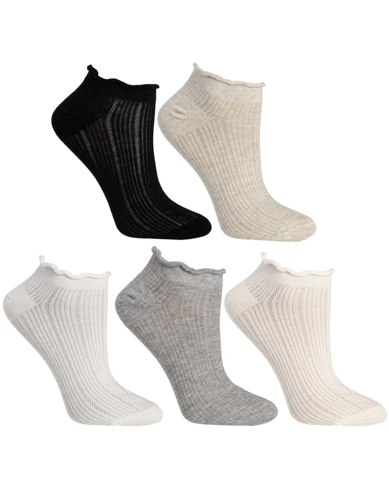 Skarpetki damskie stopki prążkowane z falowanym ściągaczem 5-pak WIELOKOLOROWY