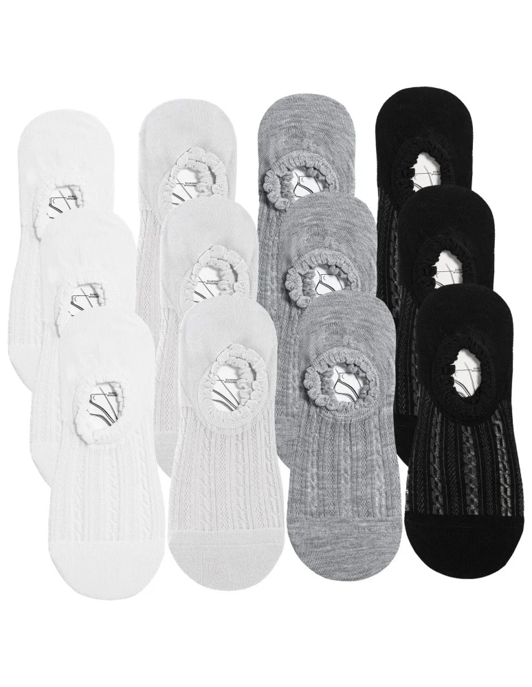 Bezszwowe wykończenie eliminuje uczucie ucisku w okolicach palców. Silikonowa zapiętka stabilizuje stopkę na pięcie, ograniczając jej zsuwanie się. Niski krój sprawia, że model pozostaje niewidoczny w obuwiu.
