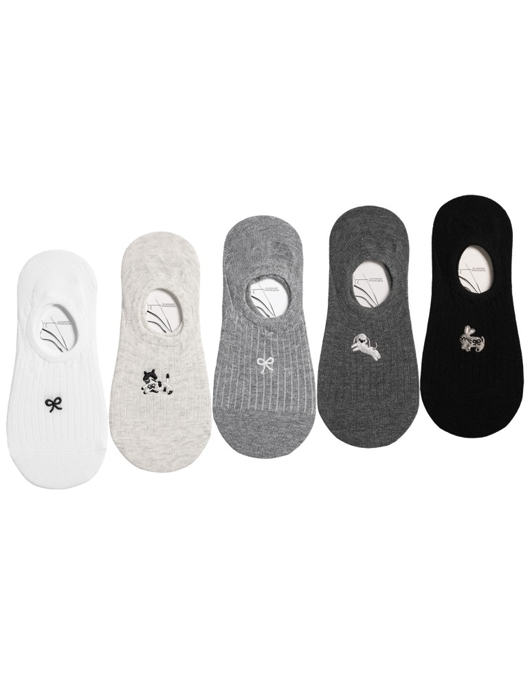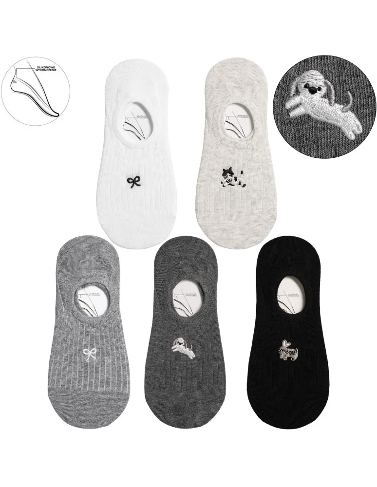 Stopki damskie bawełniane prążkowane z haftowanymi wzorami 5-pak WIELOKOLOROWY