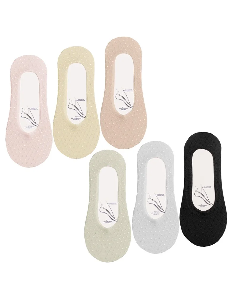 Skarpetki damskie niskie stopki siateczkowe z eleganckim haftem ABS 6-pak WIELOKOLOROWY