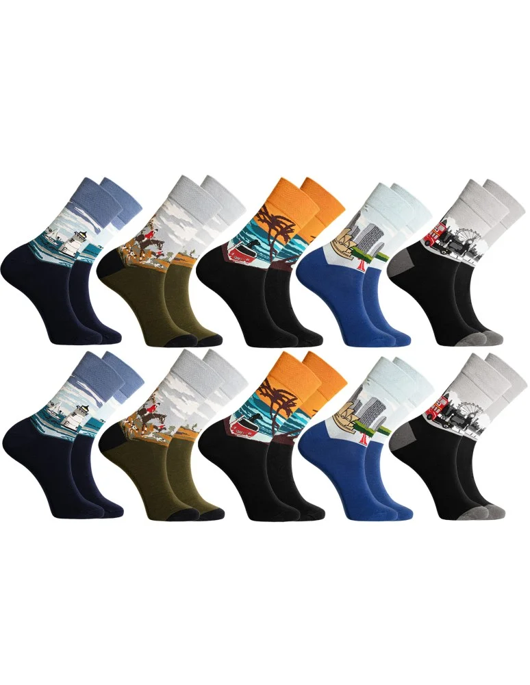 Skarpetki męskie bawełniane długie kolorowe z motywem podróżniczym 10-pak WIELOKOLOROWY