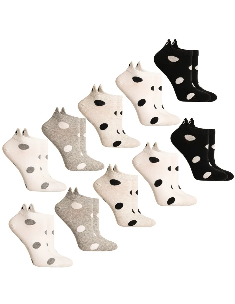 Stopki damskie bawełniane skarpetki w grochy z ozdobną zapiętką 10-pak WIELOKOLOROWY