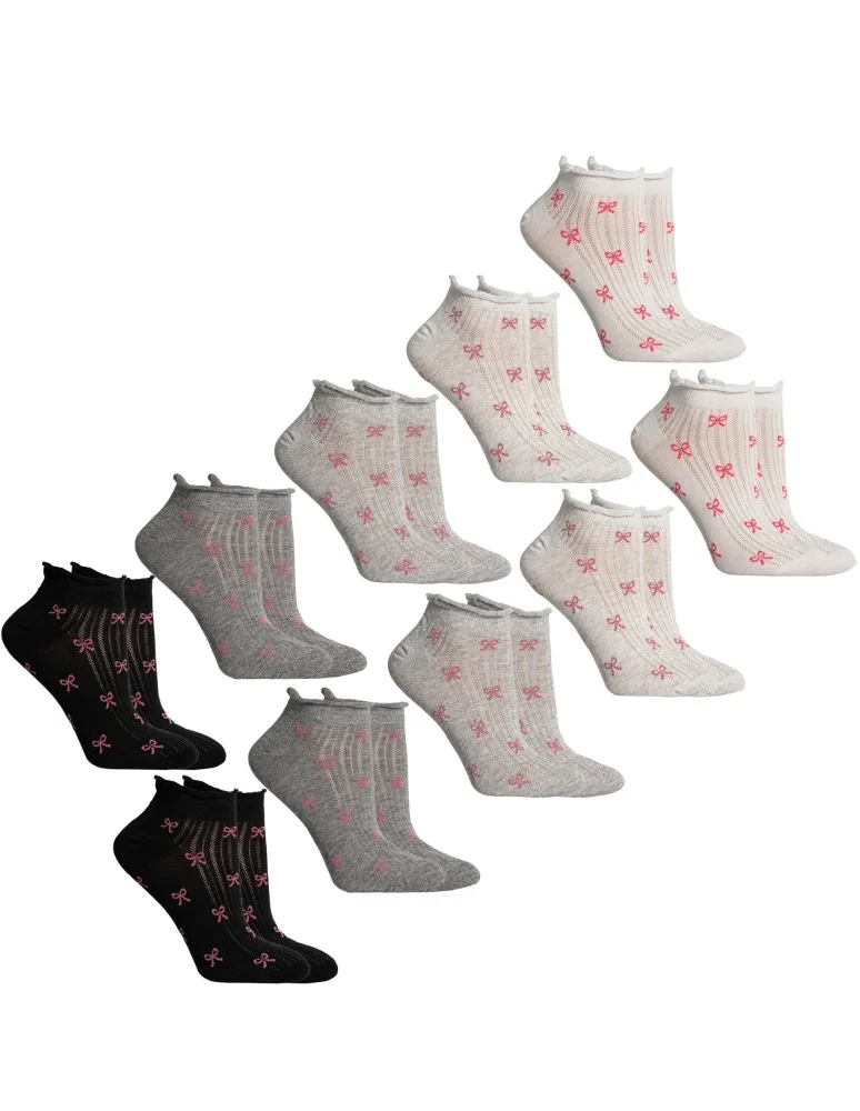 Skarpetki damskie stopki bawełniane z motywem kokardek i falbanką 10-pak WIELOKOLOROWY