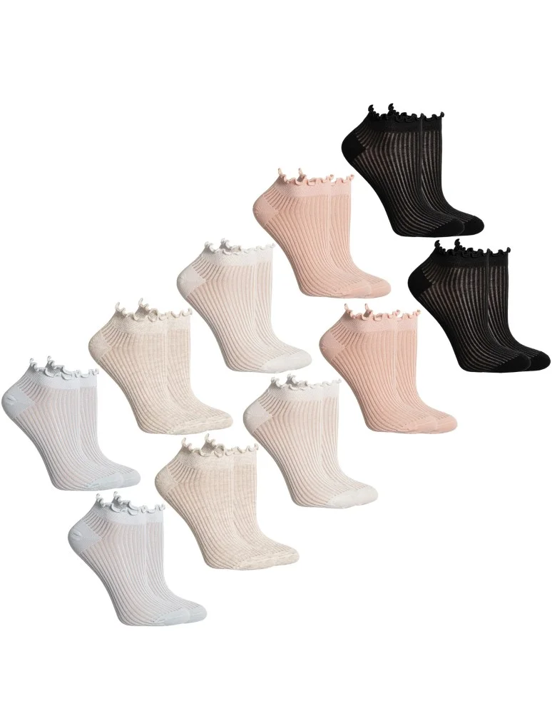 Skarpetki damskie prążkowane stopki bawełniane z falowanym ściągaczem 10-pak WIELOKOLOROWY
