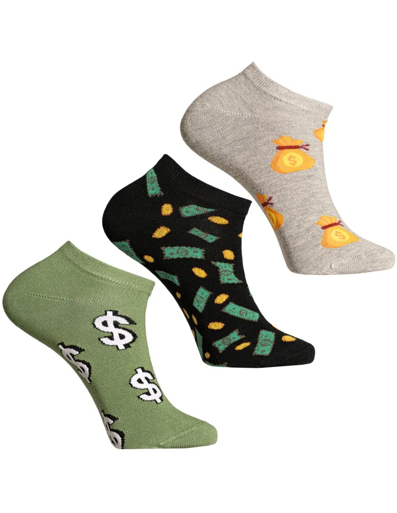 Skarpetki męskie stopki bawełniane kolorowe wzór w banknoty 3-pak WIELOKOLOROWY