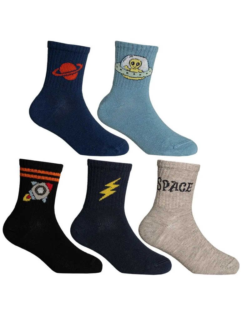 Skarpetki chłopięce bawełniane długie z motywem kosmosu 5-pak WIELOKOLOROWY