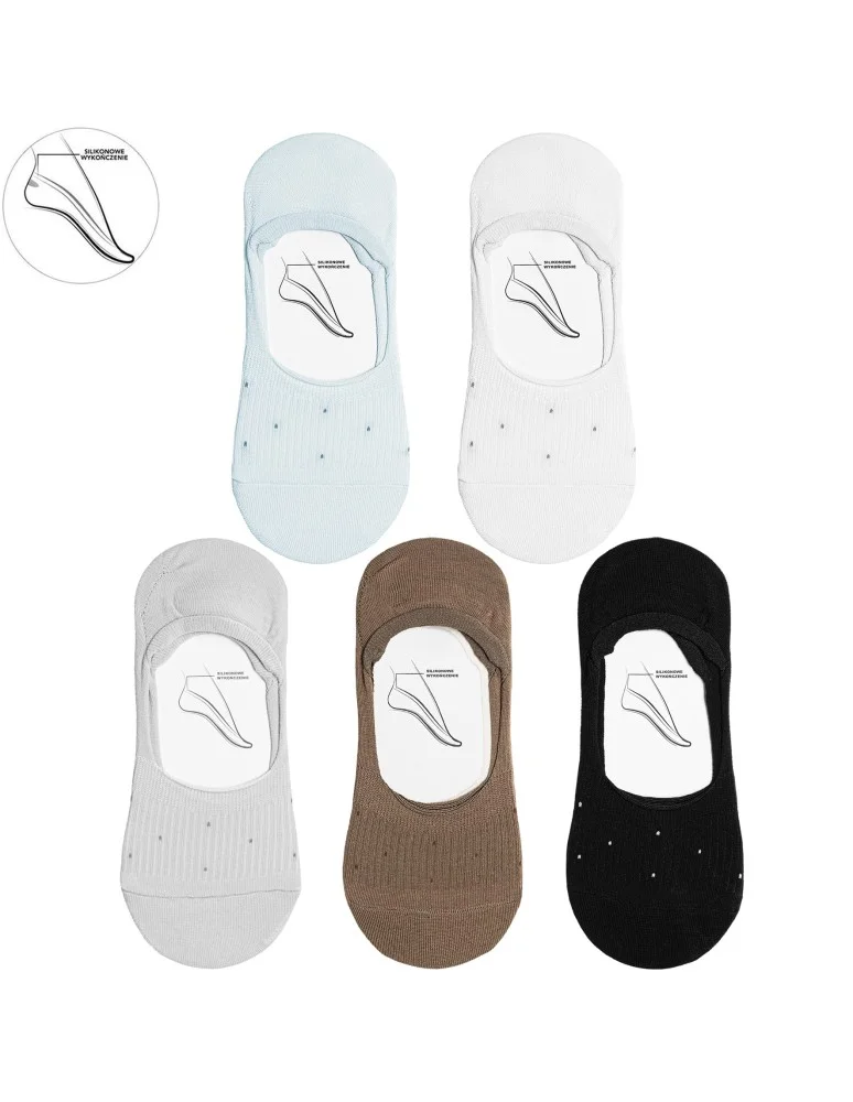 Skarpetki damskie niskie stopki gładkie z silikonową zapiętką 5-pak WIELOKOLOROWY