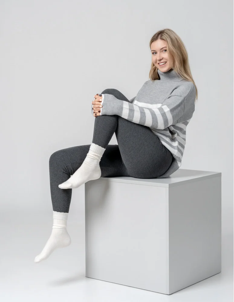 Klasyczne legginsy ocieplane damskie CIEMNY SZARY