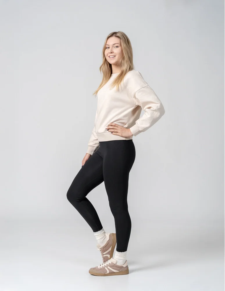 Klasyczne czarne legginsy ocieplane damskie CZARNY