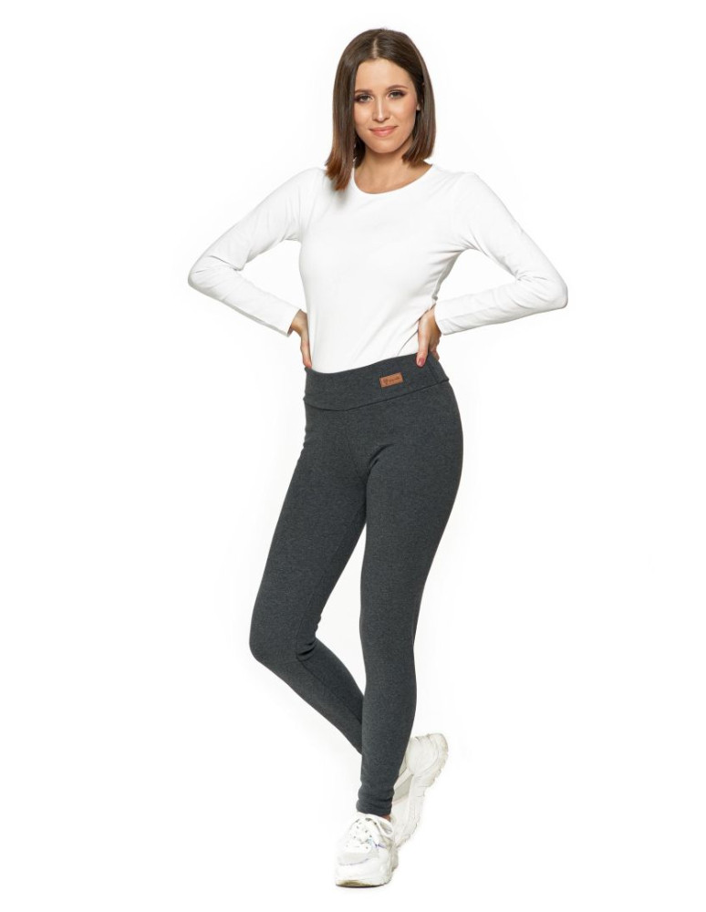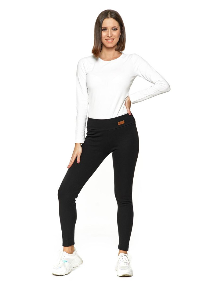 Ocieplane legginsy damskie z wysokim stanem CZARNY