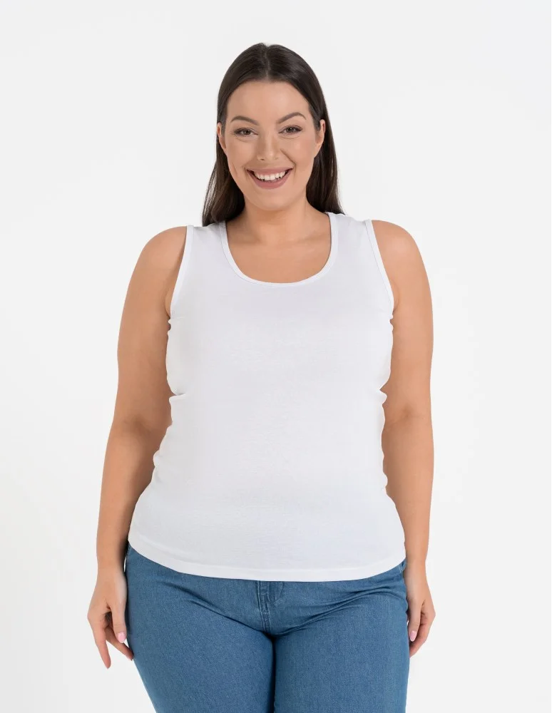 Koszulka damska na ramiączkach Tank-Top bawełniana Plus Size BIAŁY
